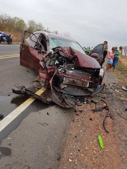 Carro ficou com a frente completamente destruída